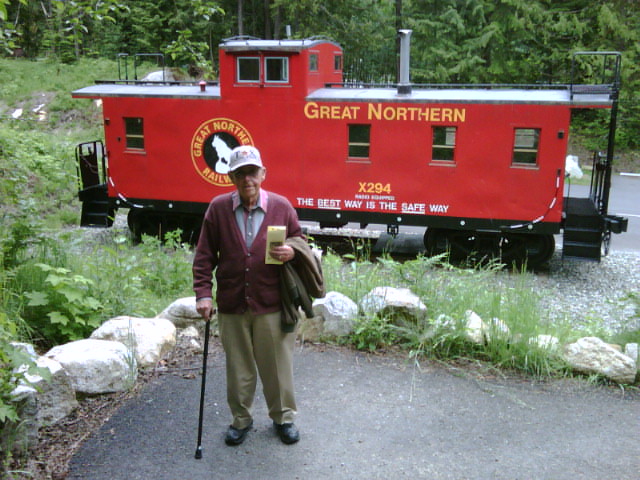 He drove to N.Bend and got here just before 9am. I was pretty much ready to go, and we were on the road around 9:15. We drove the back road thru Carnation, Duvall, and Monroe up to Hwy 2, then stopped just east of Monroe for a cup of coffee and a cookie. We got to the little town of Skykomish around 11:10 and since it was still a little early to eat lunch, we walked around town for about 40 minutes. It was cool and breezy but not uncomfortably so. We ate lunch at the Cascadia Inn which is a historic hotel with a cafe and lounge. I thought it would be a fun place to stay overnight sometime, especially if I ever go hiking up in this area. Its right across the street from the BNSF mainline, and the Empire Builder goes thru here. After lunch, we walked down to the little museum which is supposed to be open on the first and third saturday of the month from 12-4pm, but the door was locked. So then we walked back to the car and drove the local roads around the town and the old highway.