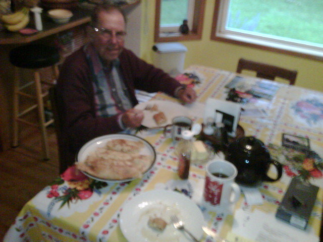 We got home about 6:20 and I made Apple Pancakes for the two of us.