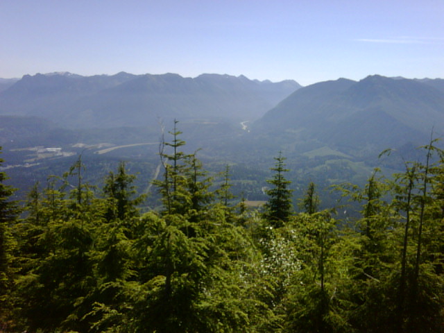 I’ve done it a few times now, but it is such a nice trail that I never tire of it, especially since its so close to home. My plan on Saturday the 27th was to park the car at Snoqualmie Point, the west end of the trail, and have Wendy drop me off at the lake. But when we got to the “Point” to drop off the car, the gate to the parking lot was still closed and a dozen cars were parked outside all waiting to get in. Somebody obviously dropped the ball and didn’t get there to open up at 6am when they should have. So rather the park outside the lot, I told Wendy lets just go back to the lake and park it there, then come back. So she dropped me off again at the Point and I started my eastbound hike about 8:15, still early. I was mildly disappointed because I had hoped to avoid the noontime crowds at the Ledge by hiking up to the ledge early and going West, with the first 4 miles the steepest, then a long easy down the rest of the way to the Point.