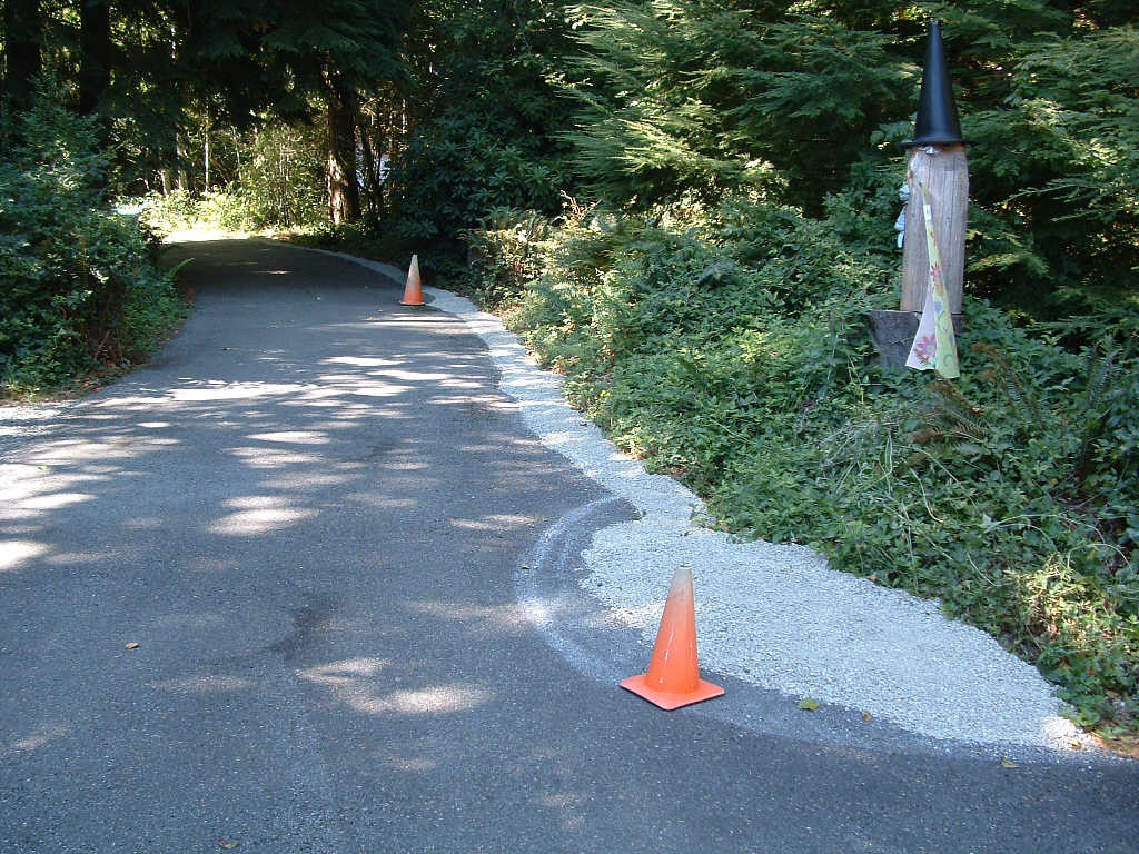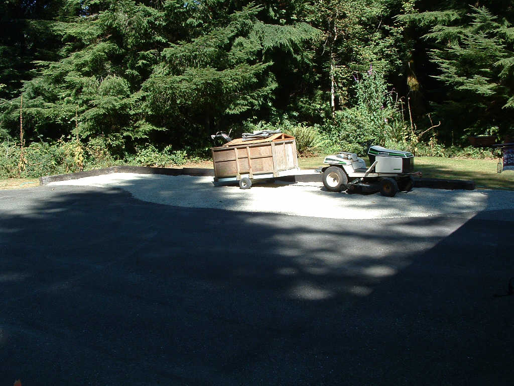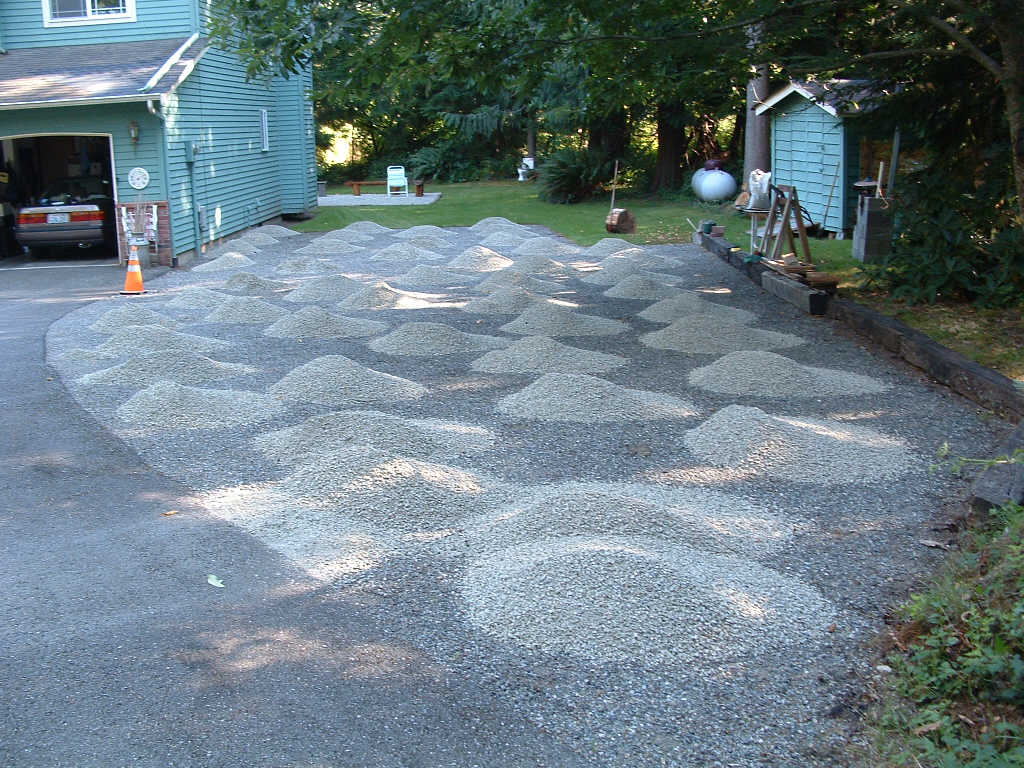 Saturday was devoted to moving gravel. I got started about 9am, and took it easy but steady until about 4, when I decided to go for a swim in the neighbors pool. Boy that was cold. But refreshing. I got the pile down to about 1/3 but was tired out and that was enough. I did manage to get some of it spread around the patio and on the east side of the driveway.