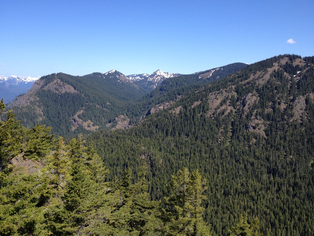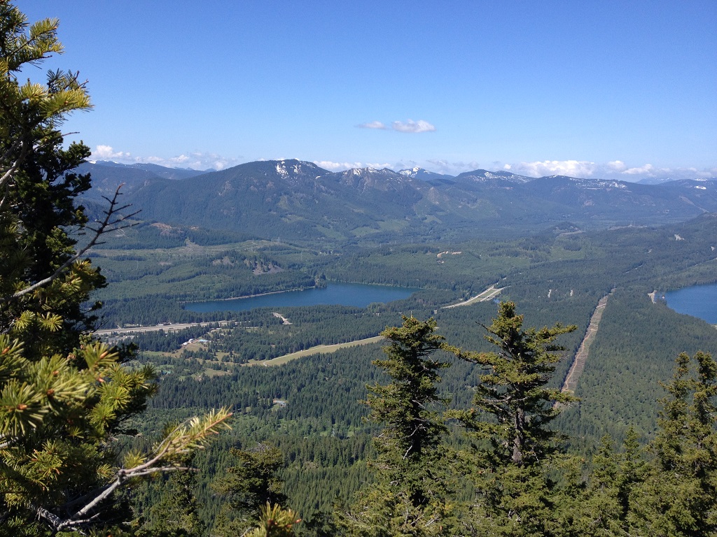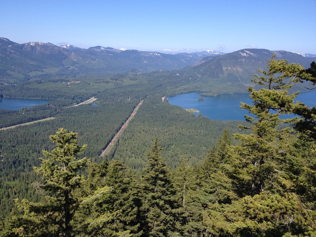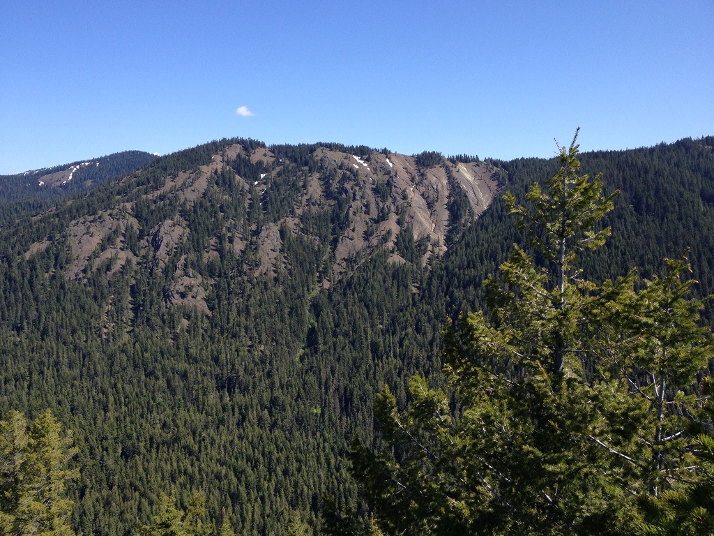 After a 45 minute break, I decided it was time to head down. If I’d had a nice chair to sit in, I could have spend hours there. But rocks are hard on the butt. I could also have continued on the trail to find where it ended, followed the group from earlier, but I knew it would be a downhill battle with my knees and without sticks, so I would just go as slow down as I did up. I was back at the car about noon, and there were probably 25 cars in the parking area and down the road. I figured most of them were on the Kachess Ridge trail, not mine, because I ran into a few, but not that many. As I drove out, I stopped under the power lines and took this picture of the mountain that I was on top of. What a great day! 6 miles RT approx.
