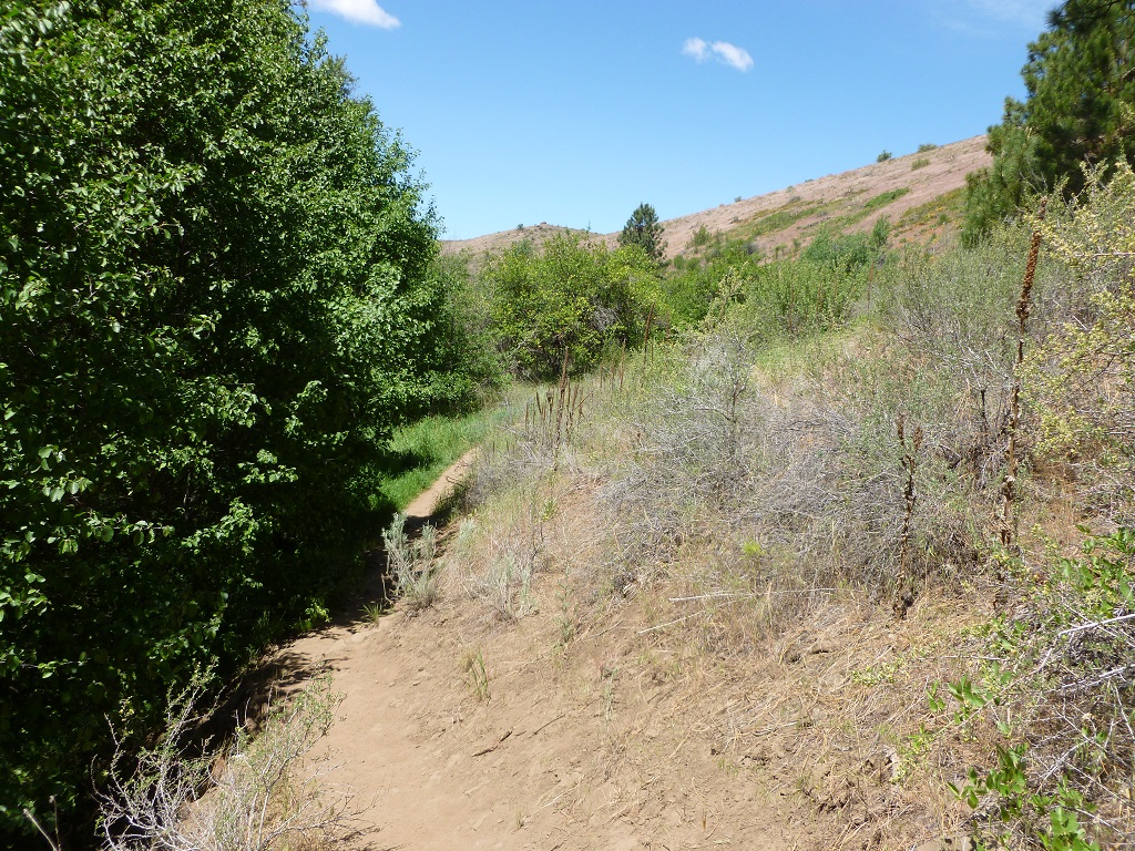 After an easy hike back out, I was back at the car at 1pm with no where near my limit of exercise so I drove back thru Ellensburg, took the old highway back to Cle Elum and headed for Easton where I was last week. Instead of going up a mountain, I stopped at the Easton trail head for Iron Horse state park, the old Milwaukee RR grade. I got there about 215 and decided to walk east, as far as I could for an hour. I got about 2.5 miles from the trailhead to West Nelson Siding Rd then turned around. Here is google maps link.