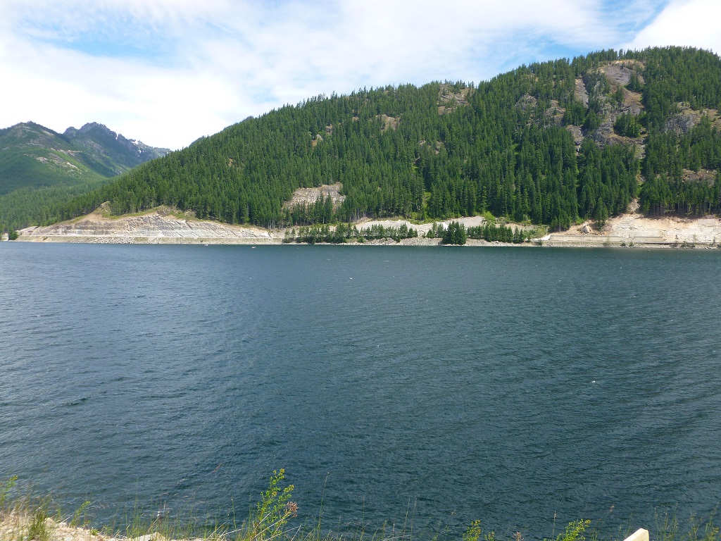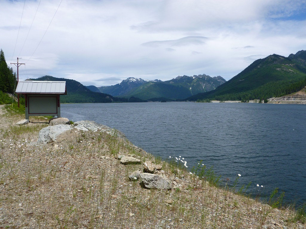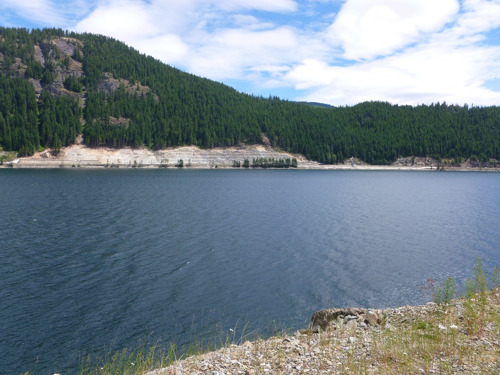 There were quite a number of people bicycling along the lake, I didn’t count them but estimate maybe 50. When I got back to the parking lot, a couple women stopped me to say they were just looking around and found this parking area, and wanted to know what all was here and where the trail went. So I gave them a brief overview west thru the tunnel and east along the lake, and how the Iron Horse goes east all the way to Idaho.