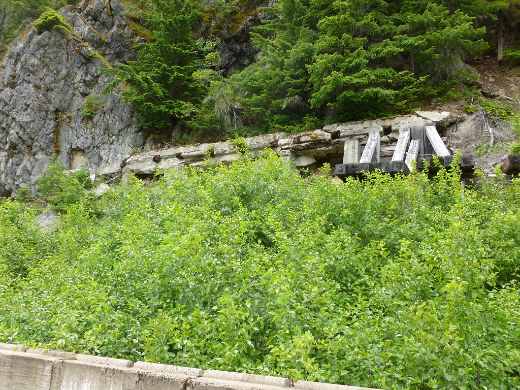 Two weeks ago(scroll down to the previous post) I walked east to west on the Iron Horse trail along Keechelus Lake from the Stampede Pass exit on I-90 and the parking area at the Keechelus Dam. Today I parked at the west end at Hyak/Snoqualmie Pass, where everybody else goes west into the Snoqualmie Tunnel, and at 11am I walked east along the lake, approximately 1/2 way to the same location I stopped two weeks ago going west. It was only a 1 hour walk from the parking lot, and mileage was approx 3 miles. Keechelus Lake is approx 6 miles long. There are remnants along the way here from the old railroad snowsheds from the previous century.