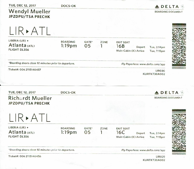 DL 356 LIR-ATL was at 2:14, and about 1pm the plane landed, another A320. At about 1:40 we boarded promptly when called, under Sky Priority. Some passengers were being chosen for random security inspection as they pass thru the gate toward the jetway, which surprised them, but we weren’t one of them. We had seats 16B&C which were exit row over the wing so we had first class leg room with 3 seats. Wendy in the middle, me on the aisle. A guy from Calif sat at the window and immediately closed the window shade. I don’t know why, it was middle of the day. I didn’t say anything but it pissed me off, unable to look out. At least Wendy had movies to watch on this plane. Otherwise it was uneventful flight to ATL and then a long walk from the plane to customs, and a long wait(with ALL of the other inbound flights there) to get thru customs. But we otherwise sailed thru again. Went straight to our next gate for the flight home, then found a Subway and got a sandwich to tide us over as there would be no food on the flight unless we purchased.